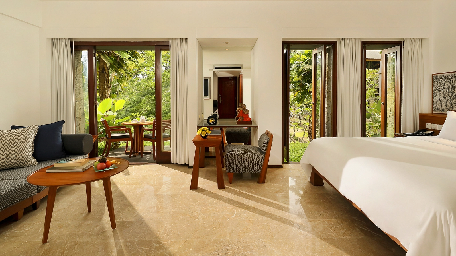 * 식사 포함 사항에는 별도로 명시되지 않는 한 음료가 포함되지 않으며, 메뉴는 사전 예고 없이 변경될 수 있습니다. * 조식 뷔페는 매일 오전 7시부터 오전 11시까지 Mayasari 레스토랑에서 제공됩니다. * 매일 제공되는 3코스 런치는 Tree Bar에서 오전 11시부터 오후 3시까지 셋트 메뉴로 제공됩니다. * 매일 제공되는 3코스 디너는 Tree Bar에서 오후 6시부터 오후 10시까지 셋트 메뉴로 제공됩니다. * 매일 저녁 칵테일은 오후 6시부터 Tree Bar에서 제공됩니다. * 애프터눈 티는 발리식 전통 다과와 커피 또는 차와 함께 매일 오후 4시부터 5시까지 Tree Bar에서 제공됩니다. * 포함된 스파 트리트먼트는 사전 예약이 필요하며, 체크인 시 예약하는 것이 좋습니다. * 스파 트리트먼트는 오전 9시부터 11시, 오후 5시부터 7시까지만 이용 가능하며, 도착 당일에는 예약할 수 없습니다. 마사지는 발리 전통 마사지입니다. * Maya Ubud와 Maya Sanur 간의 호텔 간 차량 이동 서비스는 Maya Sanur와의 콤비네이션 숙박 시에만 제공되며, 사전 이메일 예약이 필요합니다. * 키즈 클럽은 만 4세에서 12세 사이의 어린이를 대상으로 하며, 하루 최대 3시간까지 이용 가능합니다. 운영 시간은 매일 오전 8시 30분부터 오후 1시 30분까지입니다. * 매일 제공되는 리조트 액티비티에는 요가, 매트 필라테스, 논밭 산책, 숲길 트레킹이 포함되며, 리조트 일정에 따라 운영됩니다. * 우붓 셔틀은 매일 오전 9시부터 오후 5시까지 정해진 시간표에 따라 운행되며, 해당 시간 외 교통편이 필요한 경우 벨 데스크를 통해 유료로 요청할 수 있습니다. * 플로팅 조식(헤븐리 풀 빌라 투숙객 전용)은 객실 내에서 제공되며, 사전 예약이 필요하며 가능하면 체크인 시 예약해 주세요. [편도 또는 왕복 개인 공항 교통편 포함 사항 및 세부 사항 (선택된 패키지만 해당)] * 편도 또는 왕복 전용 공항 픽업 서비스가 포함되어 있으며, 서비스 유형은 구매한 패키지에 따라 다릅니다. * 영어 기본 회화가 가능한 기사, 공항 주차비, 톨게이트 요금, 생수 1병(1인당)이 포함됩니다. * 예약 시 자동 확인 메일이 발송되며, 최종 확정 메일은 요청하신 여행일 기준 7일 이내에 발송됩니다. * 차량당 수하물 적재 한도는 세단 차량은 최대 3개, 밴 차량은 최대 6개입니다. 초과 수하물에 대해서는 추가 요금이 발생할 수 있습니다. * 무료 유아용 또는 아동용 시트를 방향별로 1개 요청할 수 있으며, 또는 개인 시트를 지참하셔도 됩니다. * 운전기사는 항공편 도착 지연 시 최대 1시간까지 대기합니다. 이후에는 픽업이 자동으로 취소될 수 있습니다. * 도착 시 기사가 연락할 수 있도록 휴대전화를 켜 두는 것을 권장합니다. * 예약 완료 후 픽업 정보를 업데이트하셔야 하며, 아래 정보를 포함해야 합니다: – 항공편 번호 및 도착 시간 – 아동용 카시트 필요 여부 – 수하물 개수 (대형 짐 포함) ✅ 본 상품은 2인 기준, 3박 4일 일정으로 구성된 특별 패키지 요금입니다. 추가 인원, 객실 변경, 숙박 기간 변경 시에는 예약 전에 [문의하기]를 통해 고객님만을 위한 맞춤 상담을 받아보세요. ✅ 예약 시 1인=객실 1개를 의미합니다. ✅ 예약 시, 체크인 날짜를 선택해 주세요. ✅ 예약 가능 현황 및 호텔 요금은 실시간으로 변경될 수 있습니다.